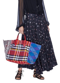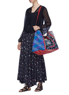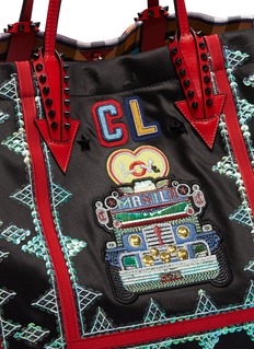 Christian Louboutin embeds the joyful pulse of Manila into this Manilacaba tote, emblazoned with a sequinned jeepney as a nod to the popular mode of transportation. Handwoven by Filipino artisans, this carryall's satin panel and bold embroideries will instantly catch attention from afar.