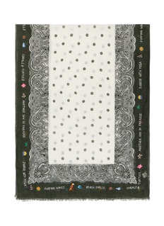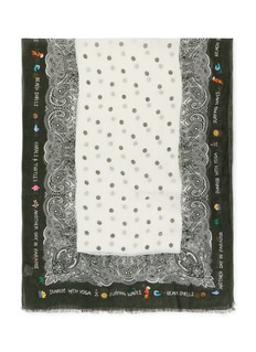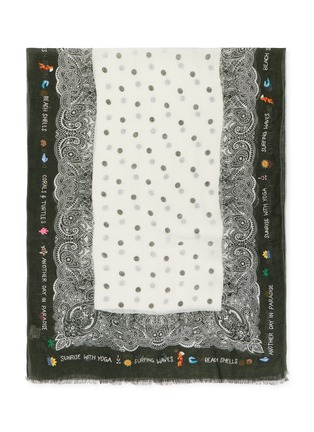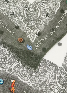 Evoking a languid day by the sea, this CITRUS scarf frames a delicate paisley border with playful embroidered icons and poetic phrases. The airy linen drapes with effortless fluidity, making it an artful accent over crisp shirting or a breezy summer dress.