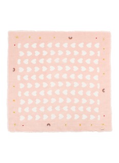 Rendered in a soft peach hue, this CITRUS bandana scarf is patterned with neat rows of ivory hearts for a sweet yet modern statement. Whimsical micro embroideries and subtle word motifs trace the border, adding a playful narrative to its airy 100% linen base. Tie it at the neck, in the hair or on your tote for an uplifting accent.