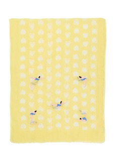 Radiating sunshine in the softest shade of yellow, this CITRUS scarf pairs an allover heart print with whimsical swimmer embroidery. Crafted from featherlight linen, it captures carefree summer moments—style it with breezy resortwear or crisp white separates for an uplifting accent.