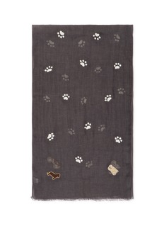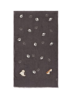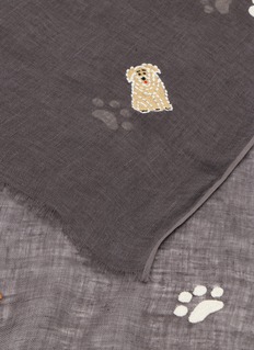 A gentle tribute to cherished companions, this CITRUS scarf captures playful paw prints drifting across airy linen. Delicately embroidered dog motifs add artisanal charm, while the lightweight weave drapes with effortless grace—perfect for layering over knits or tailoring on crisp days.
