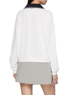 Step into effortless style with Clove's crisp white sweatshirt, elegantly trimmed with a navy collar outlined in sleek black piping. This piece combines the comfort of a sweatshirt with the polished look of a collared top, making it a versatile addition to any wardrobe. Crafted from soft, breathable fabric, it ensures comfort throughout the day.