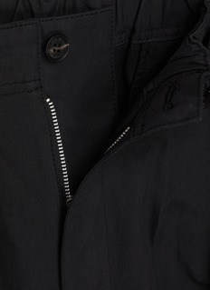 Cut from structured cotton twill, this pair balances utilitarian clarity with relaxed tailoring. An elasticated waistband is secured with an integrated webbing belt, lending functional precision to the softly draped silhouette. Designed by COMME des GARÇONS HOMME, it anchors modern wardrobes with understated authority.