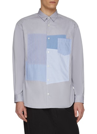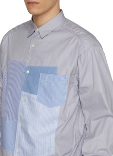 COMME des GARÇONS HOMME approaches the everyday shirt as a canvas of quiet collage. Cut from crisp cotton, this design layers stripes and micro checks across the front in asymmetrical panels, balancing discipline with play. Style it with tailored trousers to sharpen its artful contrast.