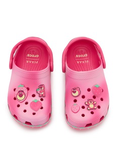 Delight your little one with the CROCS Toddlers' X Toy Story Lotso Clog, designed to spark joy and comfort. This charming pink clog features whimsical graphics and a bright, cheerful color palette that captures the imagination. Crafted with durable Croslite™ material, it offers lightweight comfort that lasts. The pivoting heel strap ensures a secure fit, making these clogs perfect for all their adventures, from playground fun to family outings.