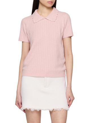 This Crush Collection sweater exudes a delicate femininity with its soft pink hue and charming scalloped collar. Crafted from a lightweight, ribbed knit, it provides both comfort and a flattering fit. The short sleeves make it an ideal choice for transitional weather, easily layered under blazers or worn alone on warmer days. The gentle color and classic texture offer a versatile look that pairs beautifully with both casual and formal attire.