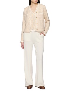 This Crush Collection jacket is a testament to understated elegance. Crafted from a luxurious, textured fabric in a soft cream hue, it exudes a subtle sophistication. The jacket features a classic V-neckline and golden button fastenings that add a touch of glamour. Two patch pockets at the front enhance its practicality, making it as functional as it is fashionable. The relaxed fit ensures it can be comfortably layered over your favorite outfits.