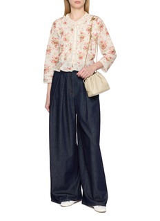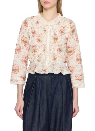 A romantic reverie in motion, the Hillock Top by DÔEN is cut from airy organic cotton voile scattered with Lantana blooms. Edwardian-inspired pintucks, ladder trims and scalloped eyelets frame the softly cropped peplum, while a ribbon-tied V neckline and mother-of-pearl buttons lend heirloom charm. Style with denim for modern pastoral ease.