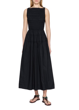 Airy yet sculpted, the Melie Dress by DÔEN is cut from crisp organic cotton poplin that holds its shape with quiet grace. A high bateau neckline frames the collarbones, while the stretchy smocked bodice melts into a softly tiered, ankle-grazing skirt. Style with leather sandals for sunlit escapes or pared-back evenings.