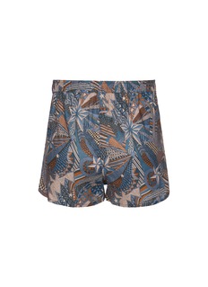 Elevate your loungewear with Derek Rose's vibrantly patterned boxer shorts. These shorts boast an intricate, kaleidoscopic design in a rich palette of blues and oranges, making them a visually striking addition to your wardrobe. Crafted with exceptional attention to detail, they offer both comfort and style with their lightweight fabric and relaxed fit.