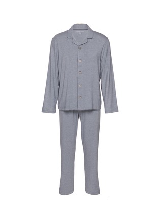 Immerse yourself in the ultimate comfort with this Derek Rose pajama set, designed to elevate your loungewear experience. The set is crafted from a soft, breathable fabric that promises comfort and ease throughout the day or night. The timeless light grey hue offers a classic look, complemented by a neatly buttoned shirt with a relaxed collar, making it ideal for both sleeping and relaxed home lounging. The matching trousers complete the ensemble with a comfortable fit and an adjustable waistband, ensuring optimal comfort.