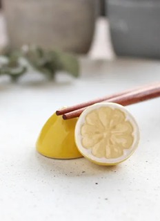 DiGRAFT shares the precision and elegance of Japanese artisanal products with the world with this playful cut lemon chopstick rest. They not only hold chopsticks, but also serve as decorative accents that enhance the dining space. Its charming appearance adds a cheerful touch to any table setting.