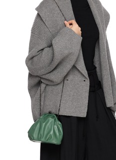 This discord Yohji Yamamoto bag redefines modern utility with its bold, sculptural silhouette and rich green hue. The circular top handle and gathered design blend avant-garde style with practicality, making it a striking statement piece for any ensemble.