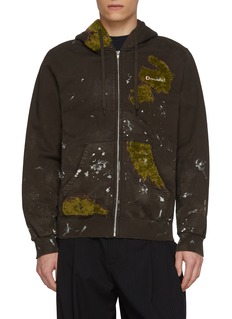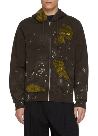 A subversive take on everyday comfort, this hoodie from doublet transforms cotton fleece into a living canvas. Moss-like embroidery and splattered effects evoke organic decay, turning casual dressing into wearable art—ideal for styling with tailored trousers or layered for off-duty statements.