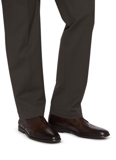 Doucal's classic Derby shoe embodies Italian craftsmanship through smooth leather construction and refined minimalist lines. The timeless lace-up silhouette features clean stitching, tonal detailing, and a low stacked heel for versatile elegance. An essential dress shoe that transitions seamlessly from office to evening with understated continental sophistication.