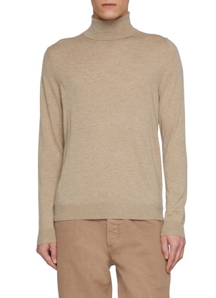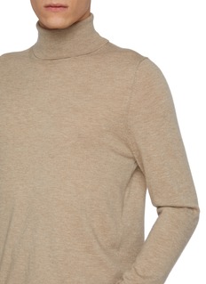 Dreyden crafts luxurious cashmere knitwear, blending heritage craftsmanship with modern sophistication. A streamlined silhouette, this turtleneck sweater is crafted in a timeless beige hue for endless versatility.