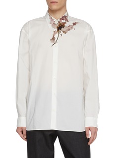Cut in crisp cotton poplin, Dries Van Noten's long-sleeve shirt is elevated by a flame lily print that blooms across the collar for a dramatic yet refined detail. A relaxed silhouette and classic tailoring lend ease to formal or layered styling, making it a statement piece for evening edits or creative workwear.