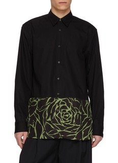 Minimalism is punctuated with graphic impact in this long-sleeve shirt, where crisp cotton poplin meets a contrasting floral outline panel. A study in placement and restraint, Dries Van Noten reframes classic shirting with an artful, almost cinematic twist suited to refined statement dressing.