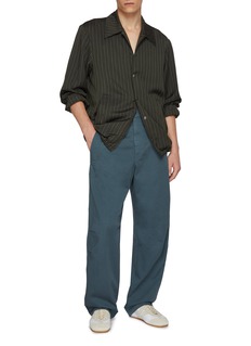 These Dries Van Noten trousers exude a timeless elegance with their clean lines and sophisticated silhouette. Crafted from premium quality fabric, the trousers offer a soft, comfortable fit that moves with you. The deep teal colour adds a subtle touch of uniqueness, making these pants versatile enough to pair with both casual and formal wear. Featuring a classic front closure and practical pockets, these trousers are not only stylish but also functional.