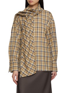 EDITION - Draped Neck Check Wool Blouse