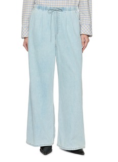 Relaxed yet considered, these denim trousers are shaped with a shirred waist that softens the wide-leg silhouette. Edition balances ease and structure through clean lines and subtle volume, making them an effortless foundation for both crisp shirts and fluid knits.
