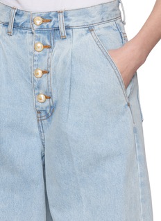Anchored in EENK’s thoughtful tailoring, these denim pants reinterpret classic workwear through a softened, wide-leg silhouette. The button-front detail lends a subtle vintage note, while the light-wash cotton denim pairs effortlessly with knits or tucked-in tops for everyday refinement.