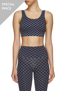 Electric & Rose presents this Sirena sports bra, featuring a chequered motif in a classic black-and-grey palette to enliven your athleisure sets. Designed with a scooped neck and back, this piece will certainly win you over with immense comfort and its retro-inspired style.