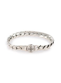 Adorn your wrist with this striking Emanuele Bicocchi bracelet, a seamless blend of bold design and meticulous craftsmanship. The bracelet's textured, interlocking links are forged from polished sterling silver, capturing the light and drawing attention with every movement. Featuring a distinctive star motif clasp, this piece is not just a bracelet but a statement of style.
