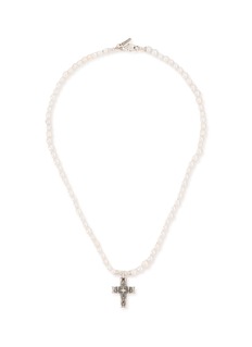 Elevate your ensemble with the divine elegance of this Emanuele Bicocchi pearl necklace, featuring a delicate strand of lustrous pearls culminating in a striking sterling silver cross pendant. The intricate detailing on the cross showcases exquisite craftsmanship, making this piece a timeless treasure. Perfect for special occasions or as a sophisticated statement in everyday wear, this necklace blends classic charm with a touch of gothic flair, ensuring it stands out as a centerpiece of any jewelry collection.