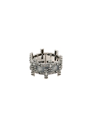 Elevate your accessory game with this striking Emanuele Bicocchi ring, crafted from sterling silver with a meticulously detailed design. The ring features an array of Gothic architectural elements, creating a texture-rich surface that catches the eye. Its robust form and ornate detailing make it a standout piece, perfect for those who appreciate jewelry with character and a story to tell.