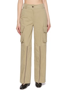Defined by its utility-inspired silhouette, these cargo pants introduce a softer tone with their neutral hue. The exaggerated zips elongate the leg line, while cargo pockets lend practical structure. Style them with minimalist separates to channel an understated, contemporary edge.
