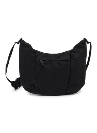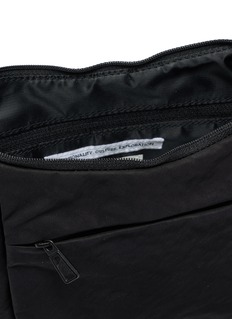 This streamlined pouch bag channels F/CE.'s utilitarian ethos with a curved silhouette, drawstring top closure, and front zip pocket for quick-access essentials. The adjustable buckle strap ensures personalized comfort for everyday carrying. A minimalist essential that balances functional design with understated urban sophistication.
