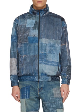 DMTL's statement bomber jacket showcases an all-over patchwork print with distinctive sashiko-inspired stitching details. The classic silhouette features a stand collar, dual zip pockets, and ribbed cuffs for a contemporary streetwear edge. An artful fusion of Japanese textile heritage and modern urban style.