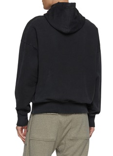 Crafted from soft, washed cotton, this hoodie embodies Fear of God’s effortless Californian minimalism. The relaxed silhouette and dropped shoulders exude a sense of ease, while the bold cracked logo print across the chest adds a vintage athletic sensibility. Pair it with oversized trousers or denim to channel modern street luxury.