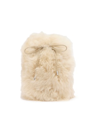 This luxuriously plush wine cooler is designed to keep your bottle chilled in elegant style. The plush shearling exterior, tied with a bow, adds a touch of sophistication and warmth to any celebration.