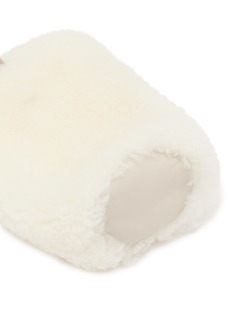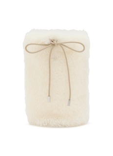 This luxurious shearling wine cooler is designed to keep your bottle chilled in elegant style. The plush white shearling exterior, tied with a bow, adds a touch of sophistication and warmth to any celebration.