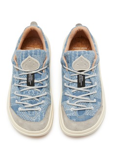 Flower Mountain reimagines sneaker style with these distinctive low-top trainers, featuring an eye-catching textured knit upper with intricate patterning. The dramatically curved platform sole creates modern sporty appeal, while the lace-up design and contrasting trim details ensure standout style with exceptional comfort for everyday adventures.