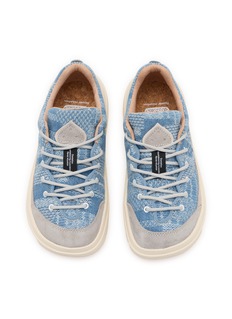 Step into effortless style with Flower Mountain's denim-inspired sneakers. These sneakers offer a fresh take on casual footwear, featuring a textured blue denim upper paired with soft grey suede accents for a contemporary yet relaxed look. The platform sole not only adds a modern twist but also provides extra comfort and elevation. Perfect for everyday wear, these sneakers are designed to complement a variety of outfits, from casual jeans to flowy summer dresses.