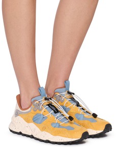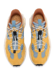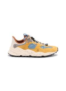 Discover the perfect blend of style and adventure with these FLOWER MOUNTAIN sneakers. Designed for the dynamic individual, these shoes feature a striking combination of mustard yellow suede and light blue mesh, accented by soft grey and tan details. The robust, speckled sole not only adds an artistic touch but also provides superior traction, making these sneakers ideal for both city streets and rugged trails. Equipped with a comfortable fit and versatile design, they are perfect for those who refuse to compromise on either style or functionality.