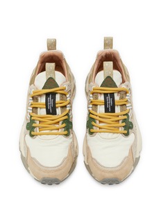 These YAMANO 3 sneakers deliver trail-ready style with vintage-inspired paneling in soft neutrals and contrasting accents. Featuring vibrant golden-yellow laces that add energetic contrast, the chunky mixed-material design combines mesh, suede, and leather for durability and breathability.