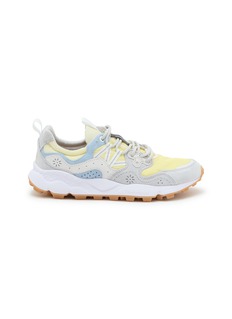 Step into spring with these FLOWER MOUNTAIN sneakers, where pastel perfection meets durable design. These sneakers feature a refreshing color palette of soft blue, pale yellow, and light grey, crafted from premium suede and breathable mesh for ultimate comfort. The innovative sole not only provides excellent traction but also adds a modern twist to the classic walking shoe silhouette. Ideal for those seeking a stylish yet practical option for active days out or casual strolls in the park.
