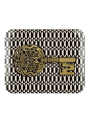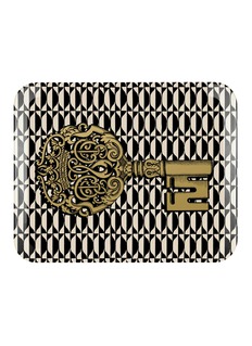 Following Fornasetti's traditional method, this Chiavi tray is made of hand-silkscreened wood to showcase impeccable artisanship. This unique number boasts a monochromatic backdrop of argyle diamond pattern and is stamped with a grand key motif, imbuing your interior with an authentic flair.
