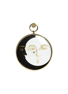 An unpublished design from the Fornasetti archives recalls the encounter between the Sun and the Moon, representing an archetypal game of contrasts: day and night, light and dark, masculine and feminine. The convex glass surface adds a magical touch to the clock, which is hand-decorated in the Milanese Atelier.