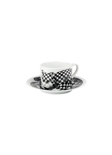 Fornasetti introduces this Quadretato tea cup accentuated with motifs taking cues from The High Fidelity decoration from the 1950s for a vintage allure. Cats are among Piero Fornasetti's favourite animals, and this hand-decorated porcelain teacup renders a moment of quotidian pleasure iconic.