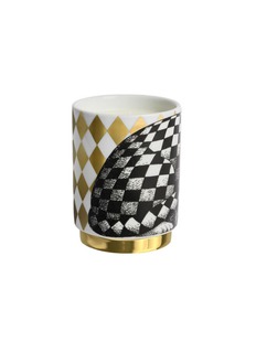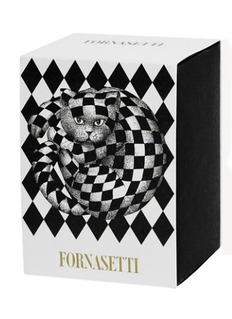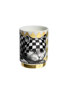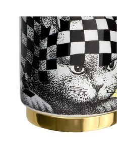 The High Fidelity decoration is part of a group of designs from the 1950s. Cats are among Piero Fornasetti's favourite animals, and this hand-decorated porcelain scented candle with gold accents renders a moment of quotidian pleasure iconic.