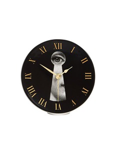 Meticulously hand-decorated, this desk clock evokes a whimsical feel to your interiors with its gold-toned accents and surreal design. Fornasetti's unmistakable decorative style makes it a true collector's item.
