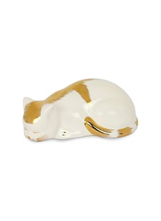 Fornesetti is a true master of ceramics, as proven by its surreal designs that have been brightening up the interiors throughout the world for years. This Striato figurine is shaped into a cat with golden accents on its head, back and tail, creating a captivating impression.