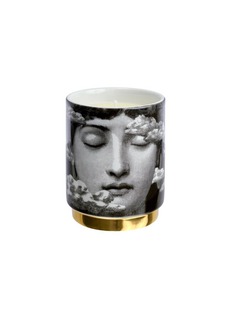 This candle is an invitation to dream. The unmistakable female face captivates with her mesmerizing gaze on the front, while on the rear she is absorbed in another dimension. Clouds surround her, flowing across the entire decorated surface and creating a surreal mood.