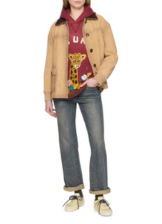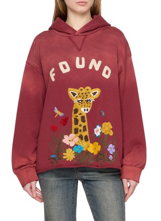 In FOUND’s universe of memory and imagination, this hoodie captures a sense of childhood wonder through an embroidered giraffe surrounded by wildflowers and a chenille logo across the chest. Vintage-treated cotton and a sun-faded wash evoke the warmth of a treasured, time-worn piece.