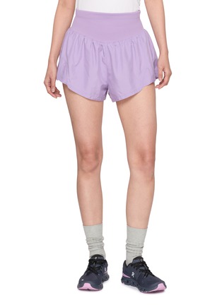 These shorts by FP Movement bring energy with a breezy, performance-ready silhouette. The high-rise waistband offers secure, flattering coverage, while the curved hem with athletic notches ensures maximum leg mobility. Crafted from lightweight, moisture-wicking fabric with built-in briefs for support, they deliver airy comfort for morning runs or studio sessions.